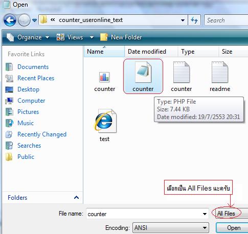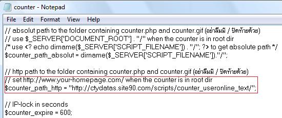 3. ใช้โปรแกรม Notepad (อยู่ที่ Start -> All Programs -> Accessories -> Notepad) เปิด File ชื่อ counter.php ครับ