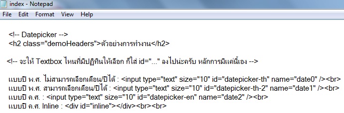 ทำปฏิทิน Datepicker ไทยแบบปีพุทธศักราช (พ.ศ.) (พัฒนาโดย Anassirk.Com)