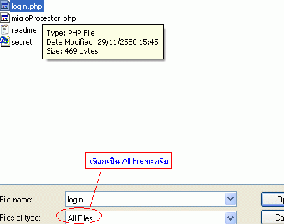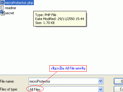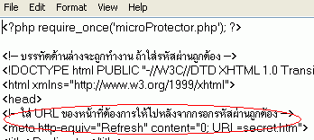 3. ใช้โปรแกรม Notepad (อยู่ที่ Start -> All Programs -> Accessories -> Notepad) เปิด File ชื่อ microProtector.php ครับ