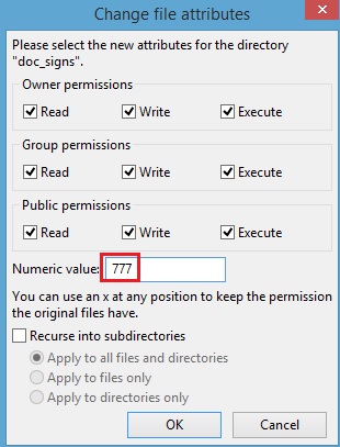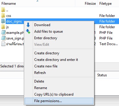 4. ให้ทำการ Set Permission โฟลเดอร์ "doc_signs" เป็น 777 ด้วย