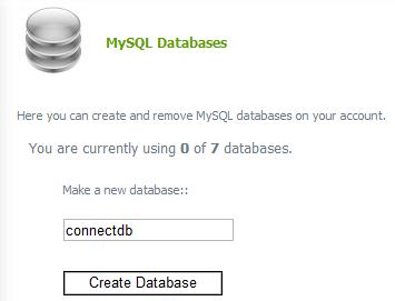 2. ให้ ไปที่ Control Panel ของเว็บไซต์ของคุณ สร้างฐานข้อมูลชื่อ connectdb (จะเป็นชื่ออื่นก็ได้นะ)