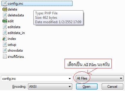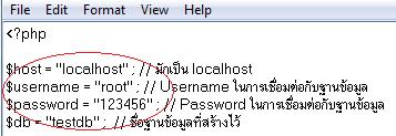 4. ใช้โปรแกรม Notepad (อยู่ที่ Start -> All Programs -> Accessories -> Notepad) เปิด File ชื่อ config.inc.php ครับ