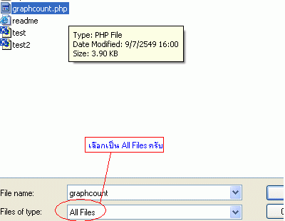 3. ใช้โปรแกรม Notepad (อยู่ที่ Start -> All Programs -> Accessories -> Notepad) เปิด File ชื่อ graphcount.php ครับ