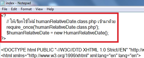 5.โดยถ้าใช้โปรแกรมเปิดไฟล์ index.php ขึ้นมาดู ก็สามารถเห็น Code ตรงส่วนที่ทำหน้าที่ แปลงรูปแบบของวัน/เวลา