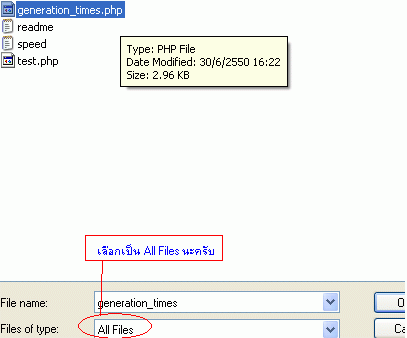 3. ใช้โปรแกรม Notepad (อยู่ที่ Start -> All Programs -> Accessories -> Notepad) เปิด File ชื่อ generation_times.php ครับ