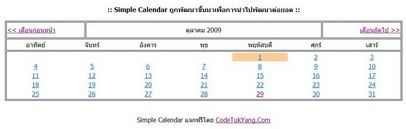 4. ก็สามารถใช้ได้เลยครับ เรียกหน้า calendar.php ขึ้นมา ก็จะแสดงปฏิทินขึ้นมาเลยครับ